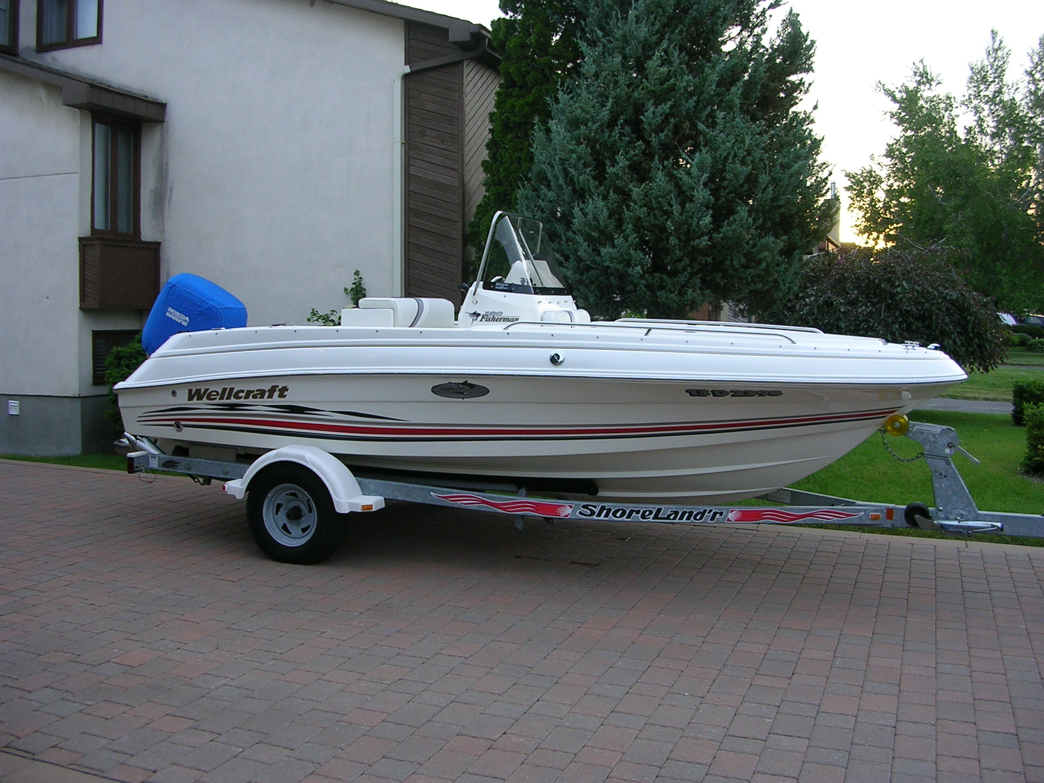 Wellcraft 18.5 console centrale édition sport 2002 impeccable moteur Honda 130 hp. (100 hrs) radio am-fm gps hélice ss remorque Shoreland’r galvanisée avec freins à disques toile rapide